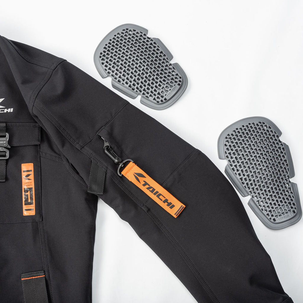 Shoulder, elbow protectors and back foam padding as standard equipment can be upgraded CE lv.2 approved protectors (option).